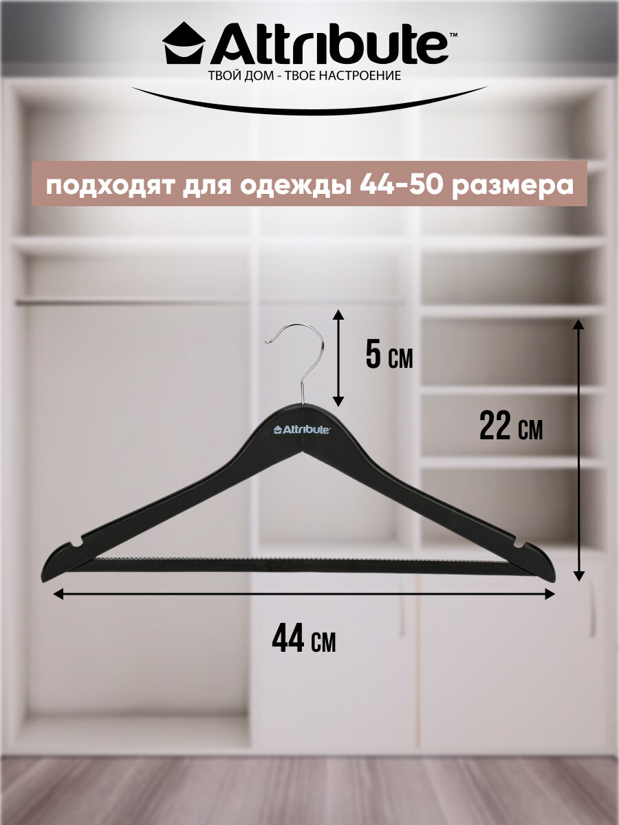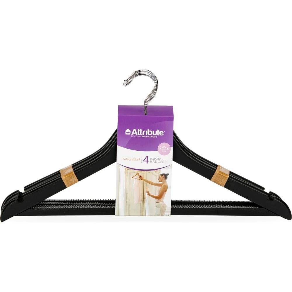 набор вешалок ATTRIBUTE Siluet Black 4шт 44см универсальные дерево, металл