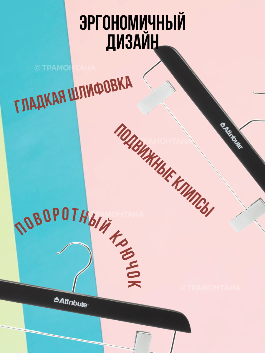 набор вешалок ATTRIBUTE Siluet Black 4шт 44см универсальные дерево, металл
