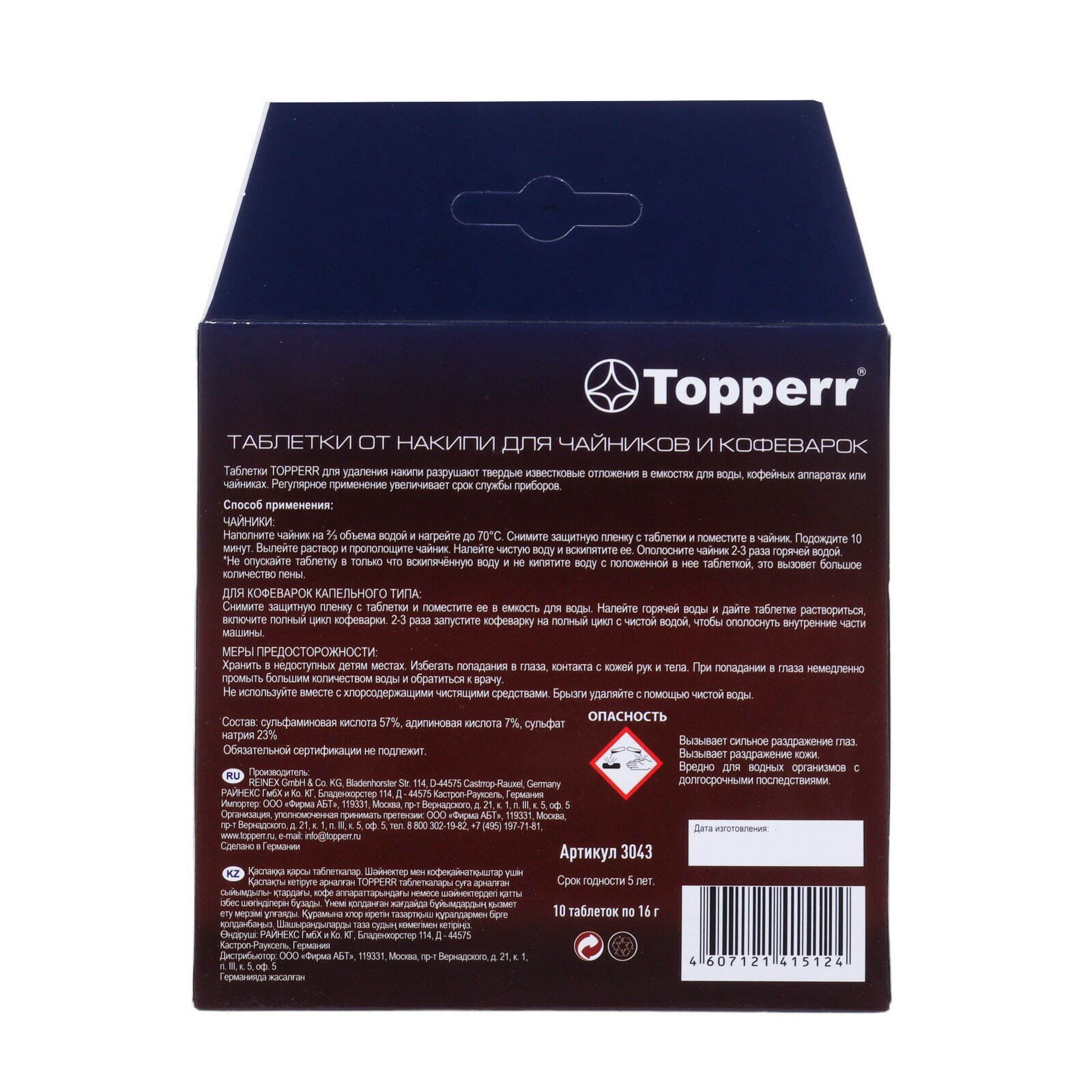 Купить Таблетки Topperr от накипи для чайников и кофеварок 3043 10 шт , 160 г