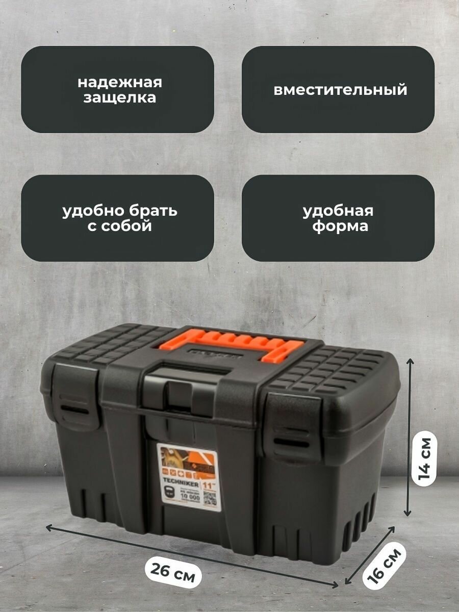 Ящик для инструментов, 11 '', 26.5х15.5х14 см, пластик, Blocker, Techniker, черный, BR3746ЧР