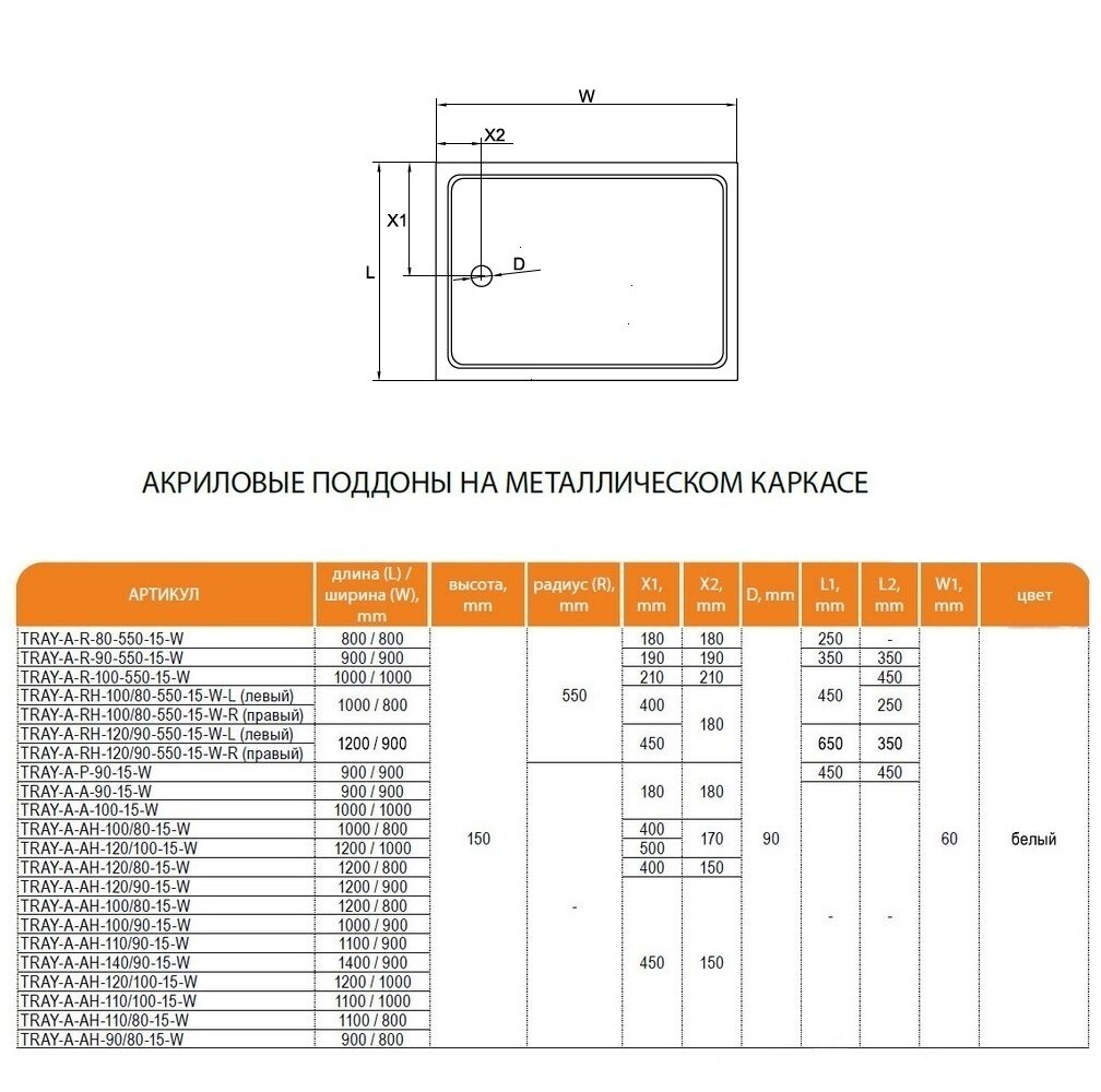 Акриловый поддон CEZARES TRAY-A-RH-100/80-550-15-W-R