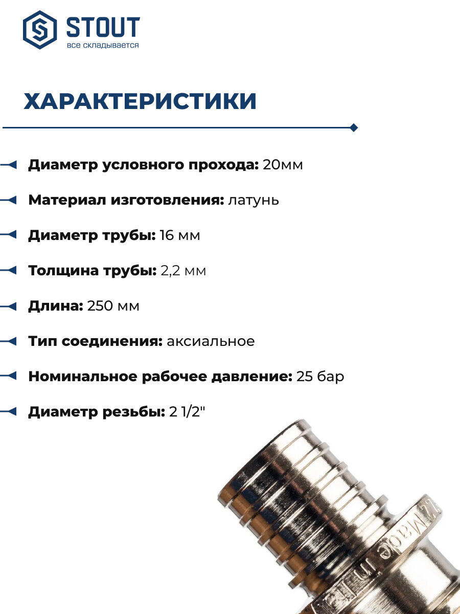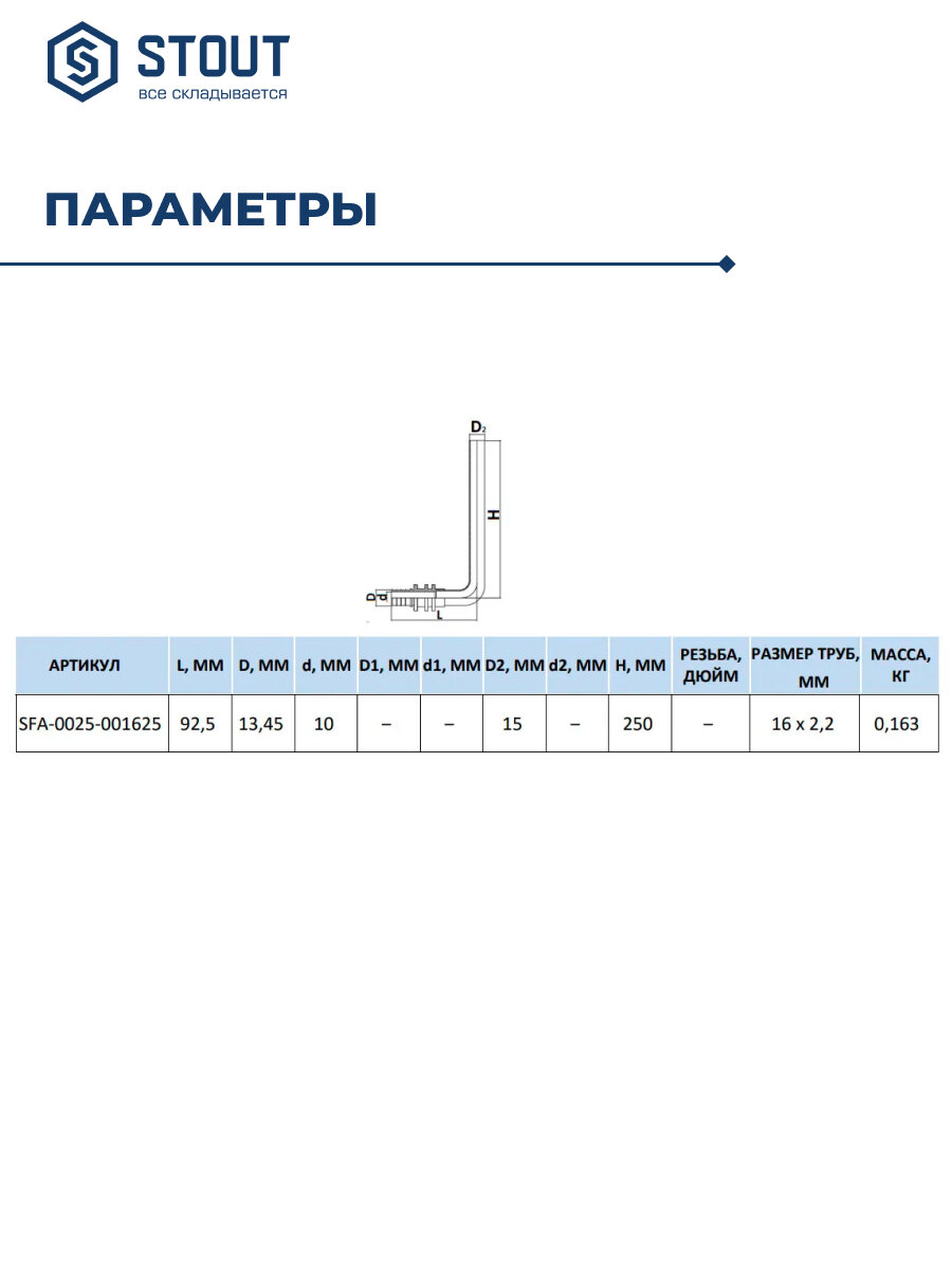 Stout Трубка для подкл-я радиатора, Г-образная 16/250 SFA-0025-001625 Rg008p0udb4u6e .