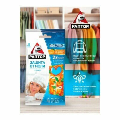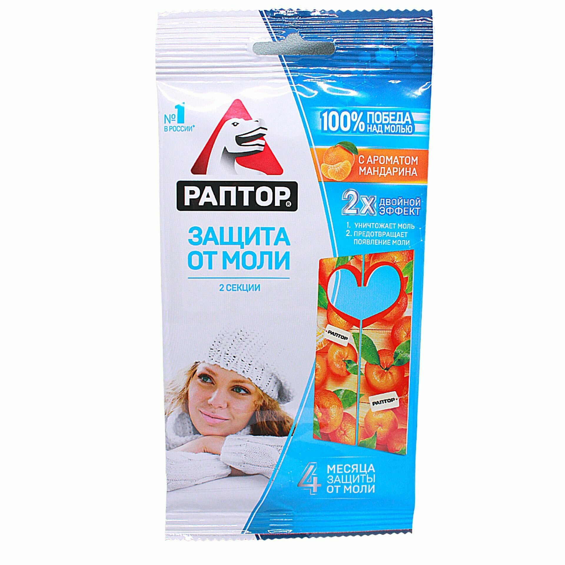 Средство от моли раптор с ароматом мандарина, 2 уп. по 2 секции / защита от моли
