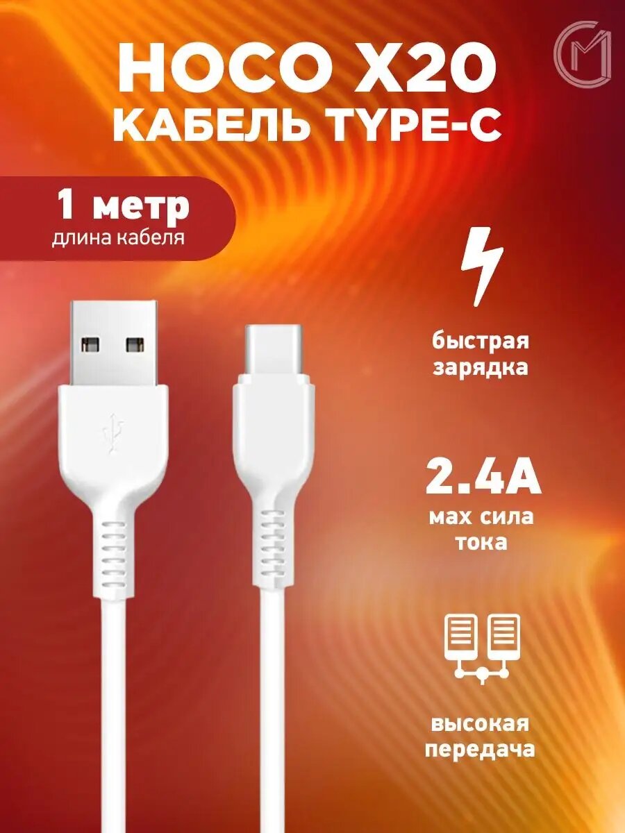 Кабель Hoco X20 Flash USB - USB Type-C, 1 м, 1 шт., белый