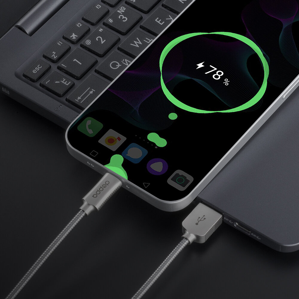 Кабель DEPPA USB Type-C - USB 2.0, 1.2m, алюминий, стальной