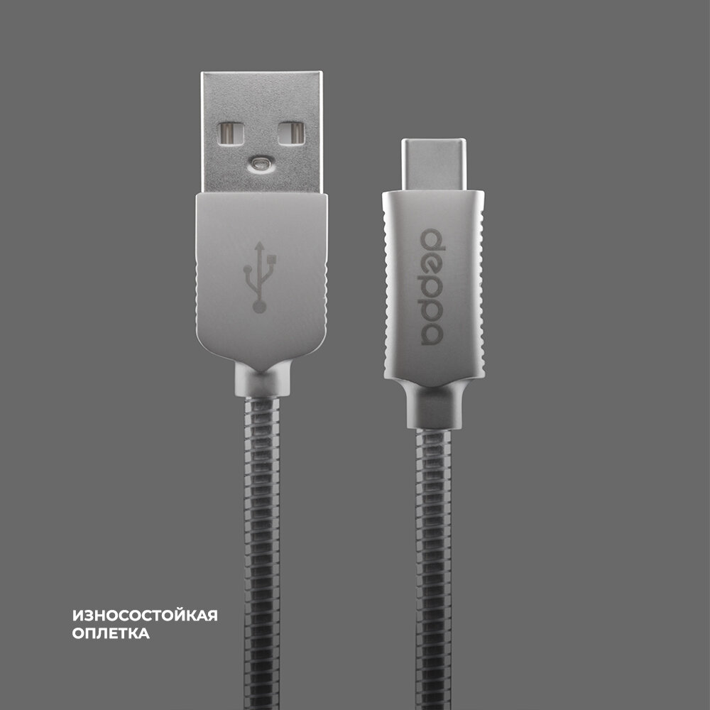 Кабель Deppa Steel USB - USB Type-C, стальной (RU)