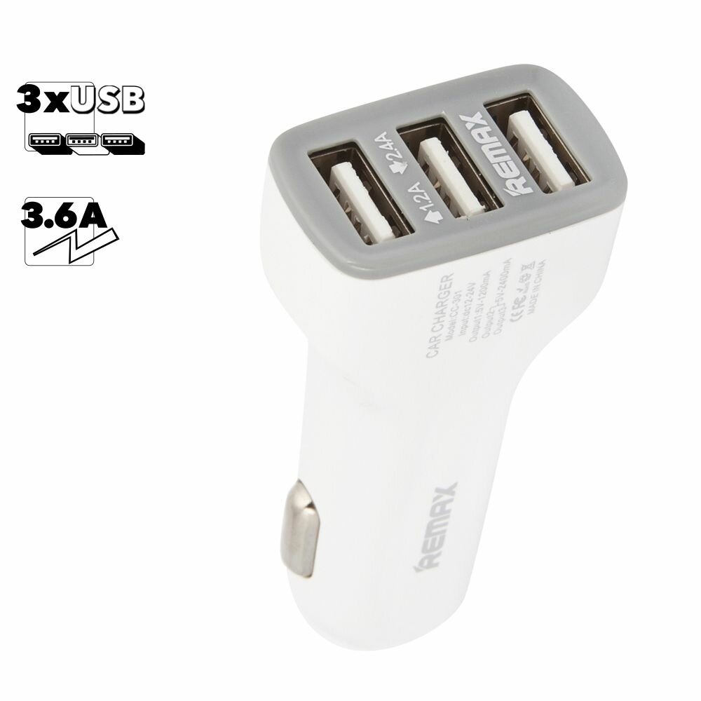 Купить Автомобильное зарядное устройство с 3 USB выходами Remax Car Charger JIAN CC301, ток заряда 3.6А, белый