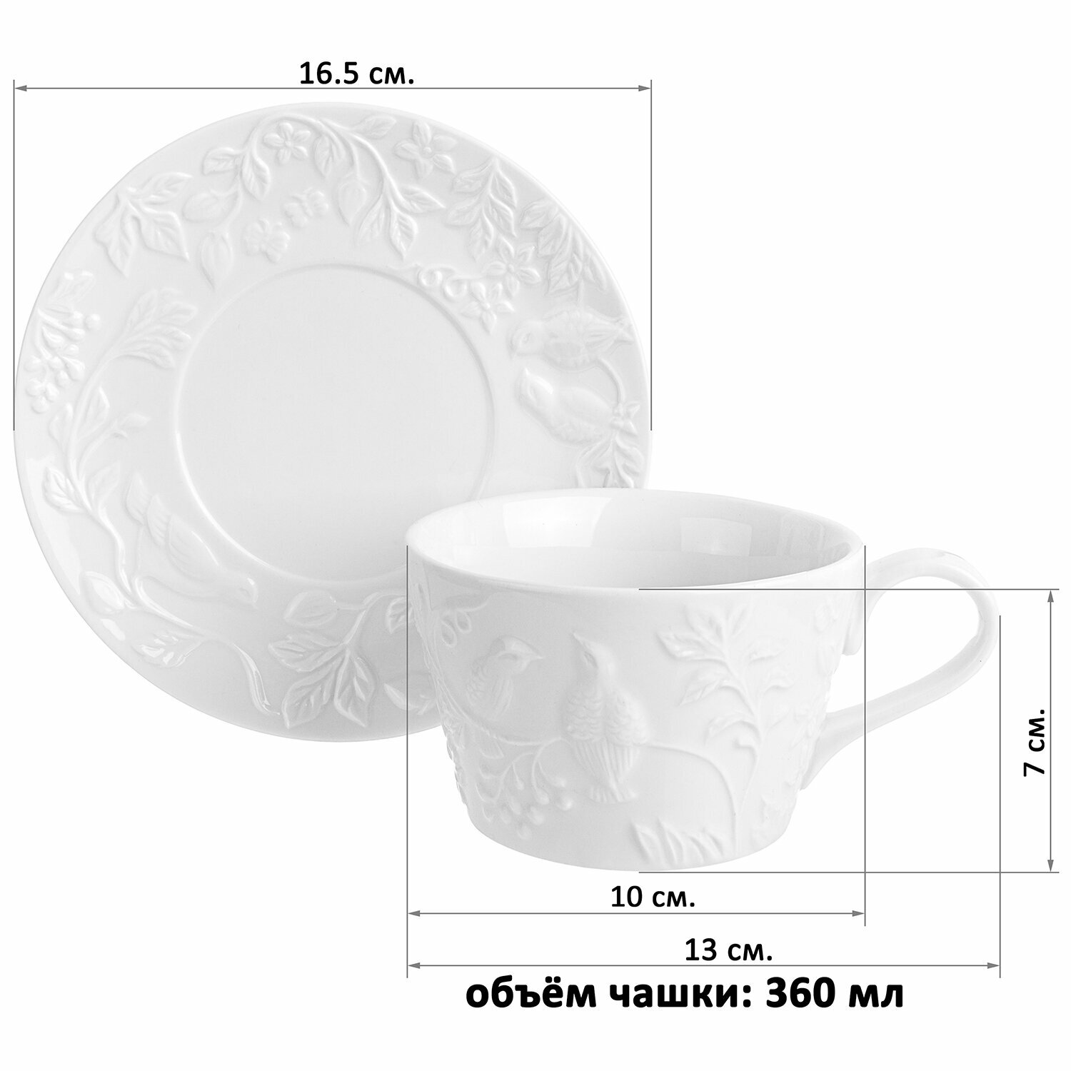 Чашка с блюдцем / чайная пара / кружка для чая / кофе 360мл Elan Gallery "Птички на ветке"