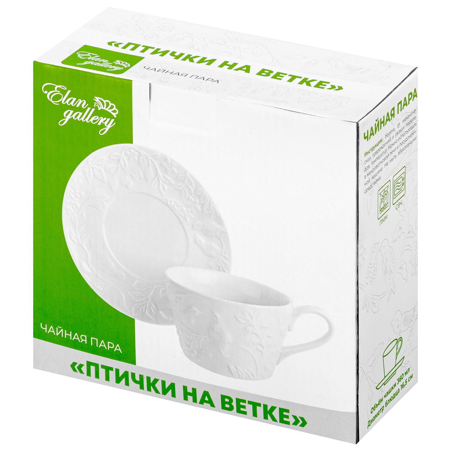 Чайная пара Elan Gallery "Птички на ветке" 360 мл интересное: