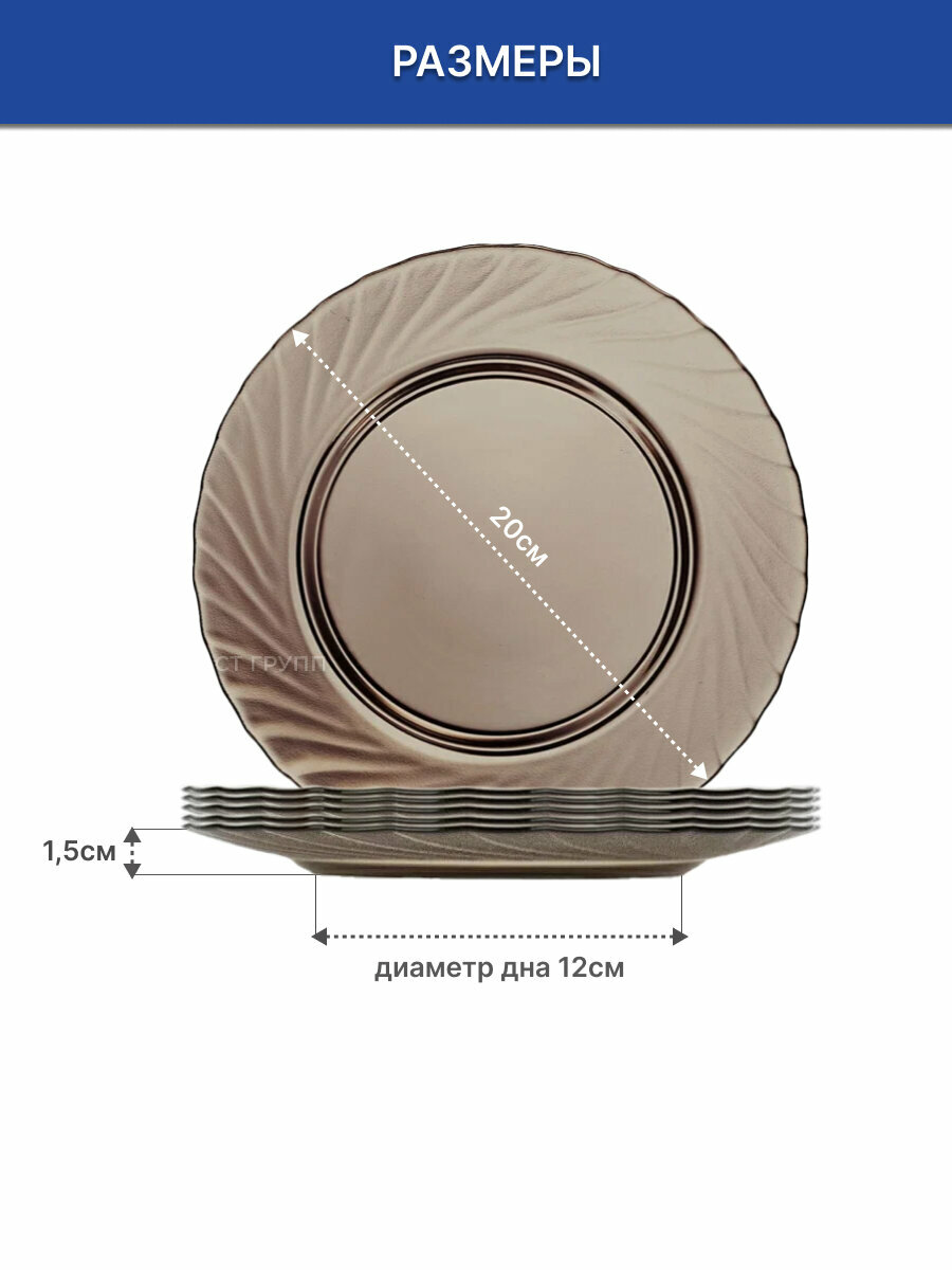 Набор тарелок Luminarc "Океан Эклипс", суповые, коричневые, стекло, 20,5 см