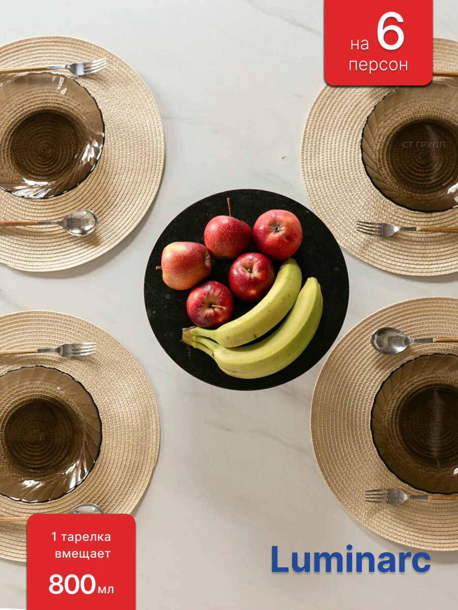 Купить Набор тарелок Luminarc "Океан Эклипс", суповые, коричневые, стекло, 20,5 см