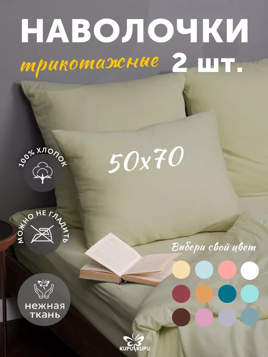 Наволочки 50х70 KUPU-KUPU трикотажные, на молнии 2шт, олива