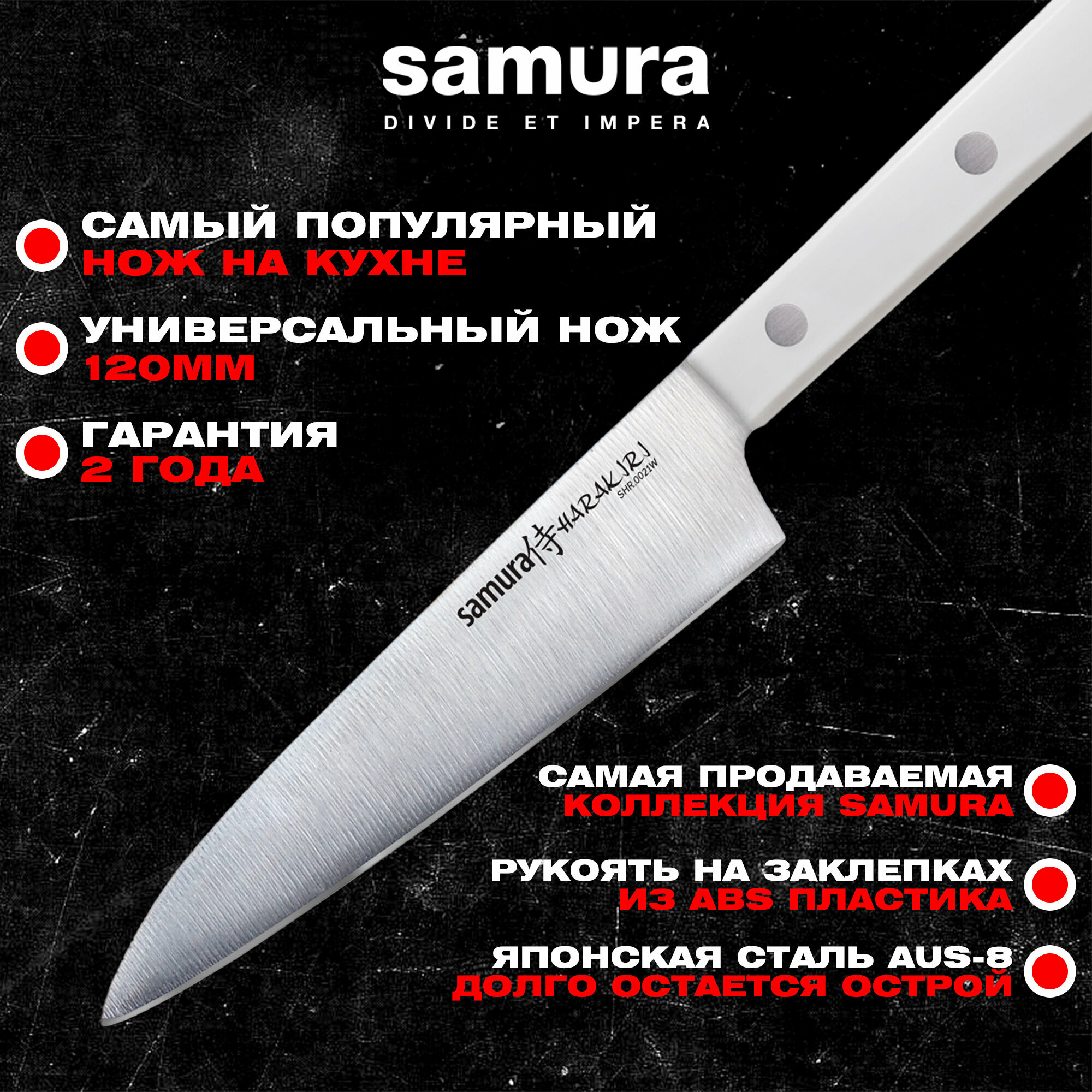 Купить Нож кухонный Samura HARAKIRI, универсальный 120мм (SHR-0021W)