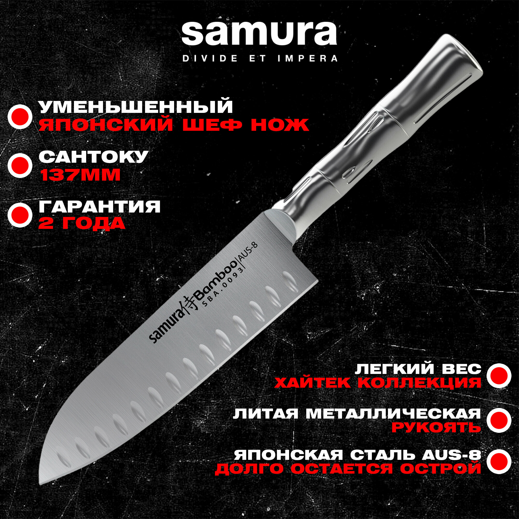 Ниже Вы можете прочитать отзывы на Нож кухонный Сантоку Samura Bamboo AUS-8, 137 мм (SBA-0093/K), ознакомится с подробными характеристиками, посмотреть интересные обзоры и фотографии на Нож кухонный Сантоку Samura Bamboo AUS-8, 137 мм (SBA-0093/K).