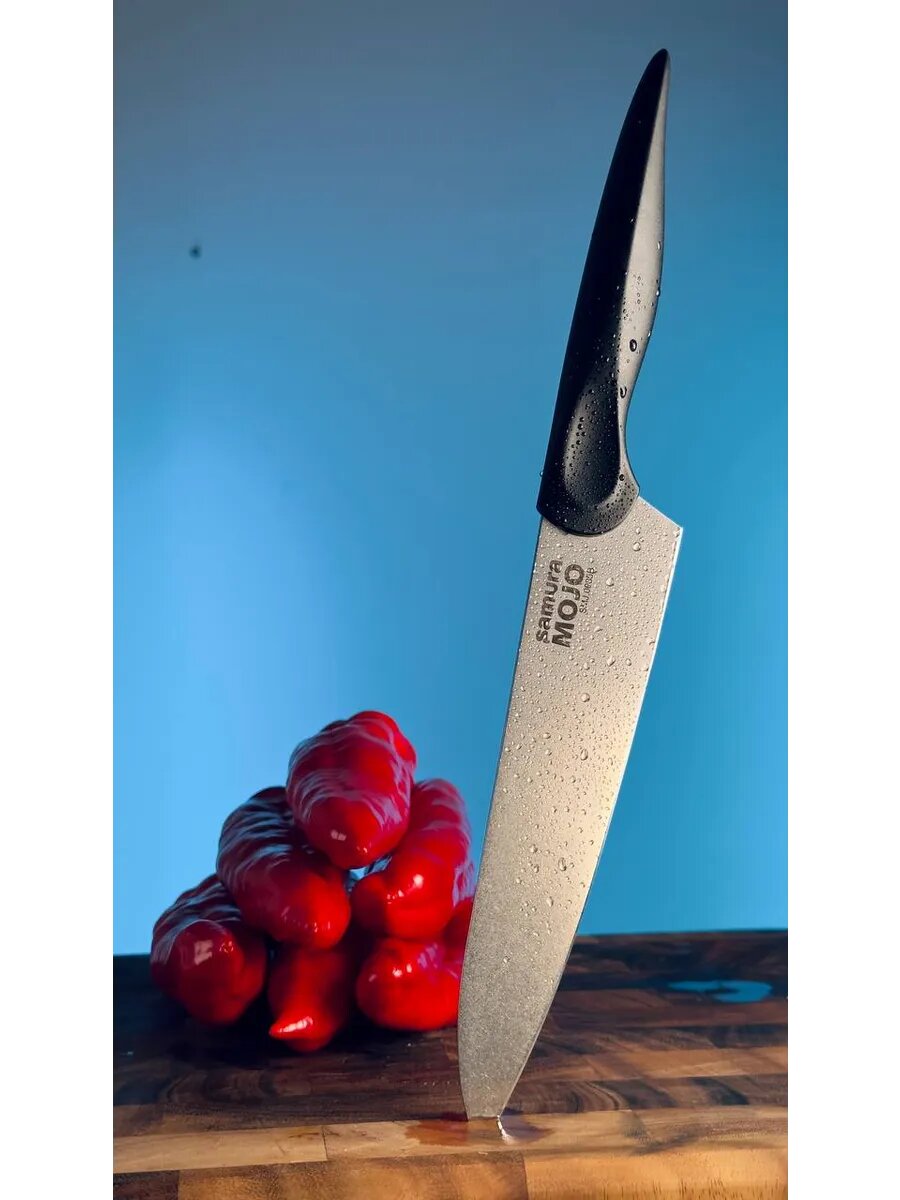 Ниже Вы можете прочитать отзывы на Нож кухонный Шеф Samura MOJO 200 мм, черная рукоять (SMJ-0085B/K), ознакомится с подробными характеристиками, посмотреть интересные обзоры и фотографии на Нож кухонный Шеф Samura MOJO 200 мм, черная рукоять (SMJ-0085B/K).