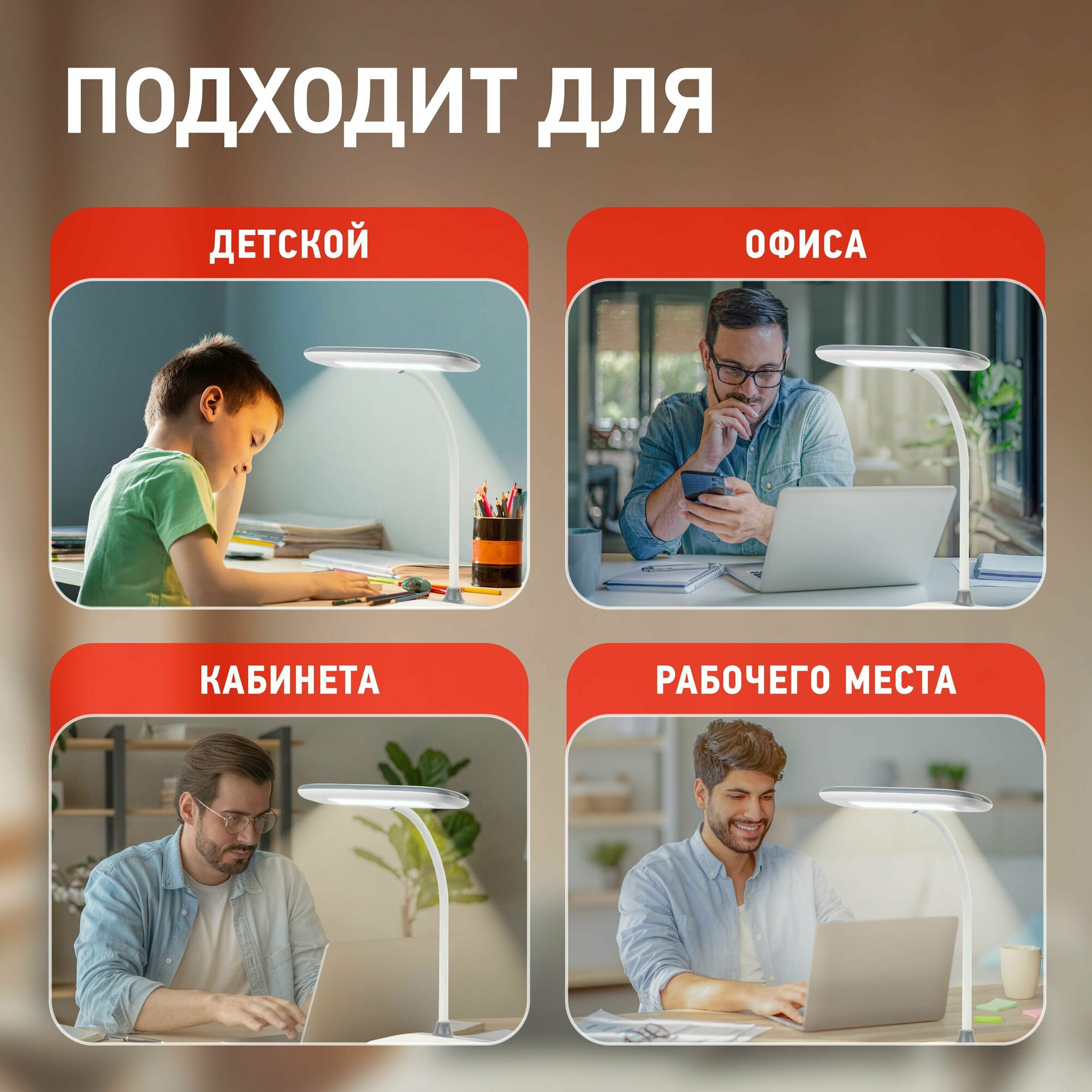Офисная настольная лампа светодиодная с диммером и выключателем регулировкой цветовой температуры и яркости NLED-458-6W-W (ЭРА)