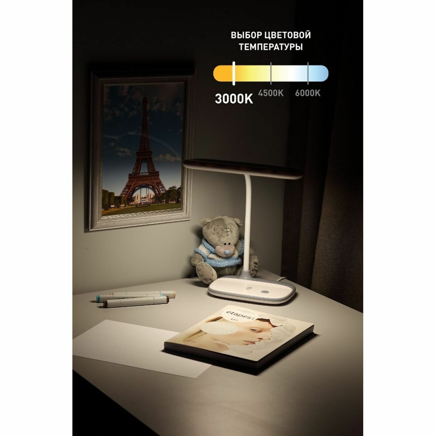 ЭРА Б0028457 Настольный светодиодный светильник NLED-458-6W-W белый {диммер яркости, цвет. температура 3000/4500/6500К}
