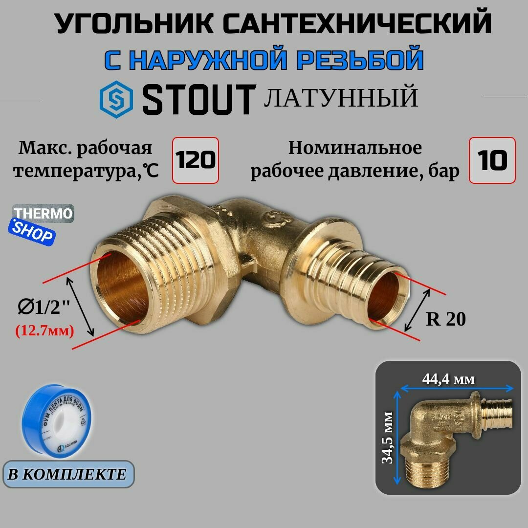 Угол Stout (SFA-0005-002012) 20 мм х 1/2 НР(ш) латунный