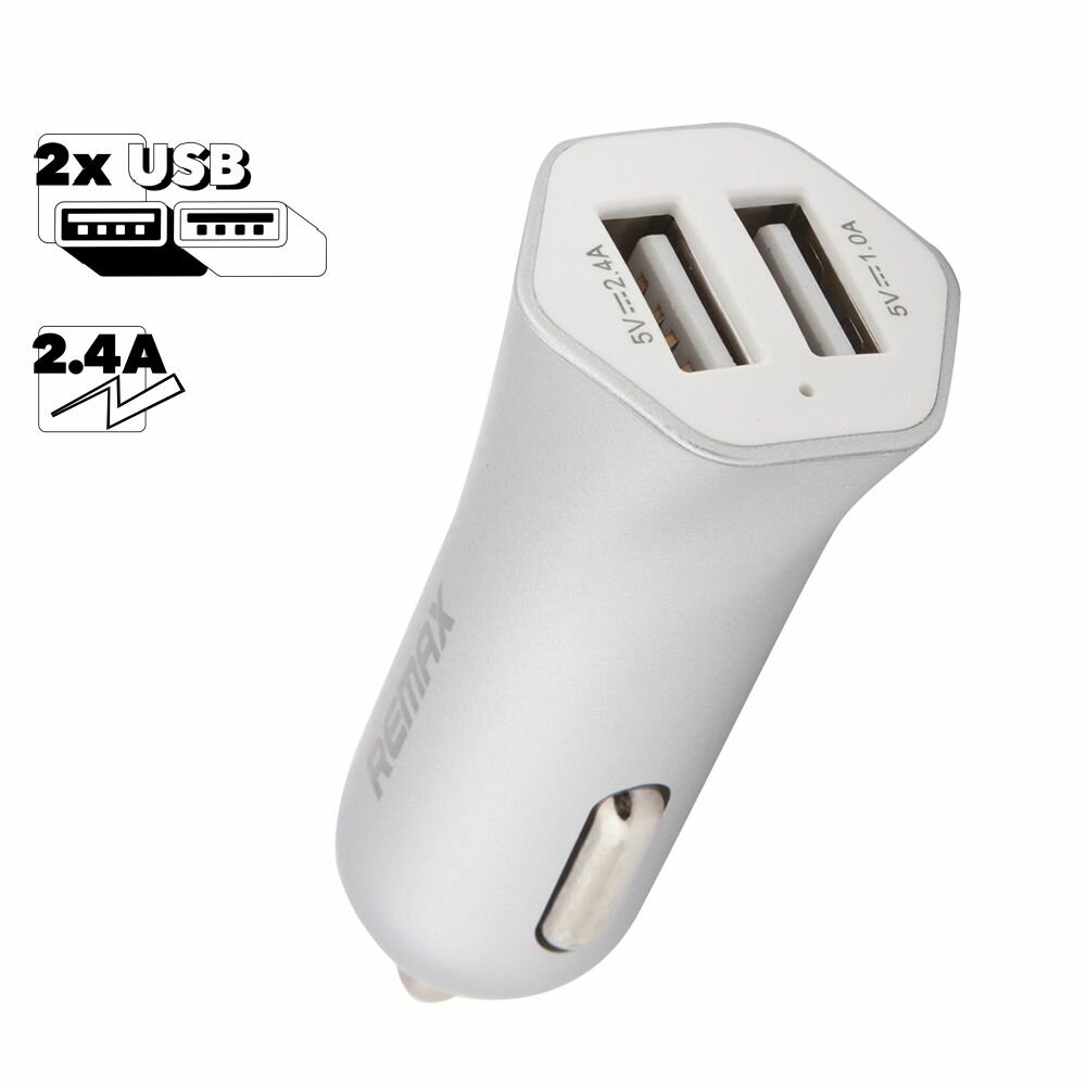 Автомобильное зарядное устройство Remax Fast 7 RCC204 2xUSB, 2.4А, серебристый интересное:
