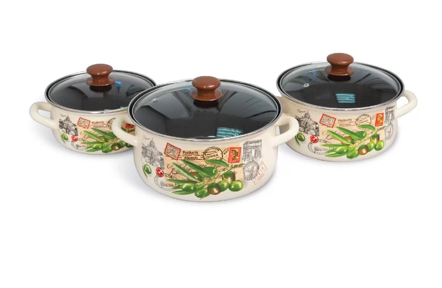 Набор эмалированной посуды 6 пр, кастрюли 1.5,2,3 л, Керчь, Грациозный-Экстра