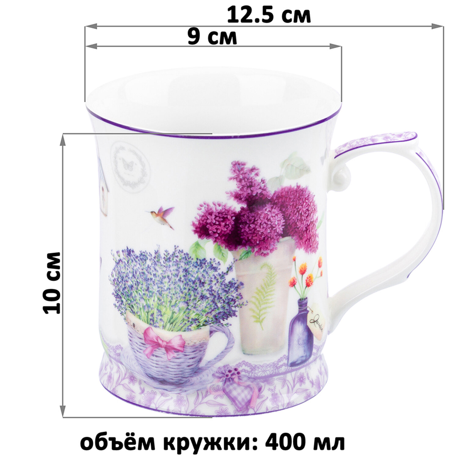 Кружка 400 мл 12,5*9*10 см "Лаванда" NEW BONE CHINA