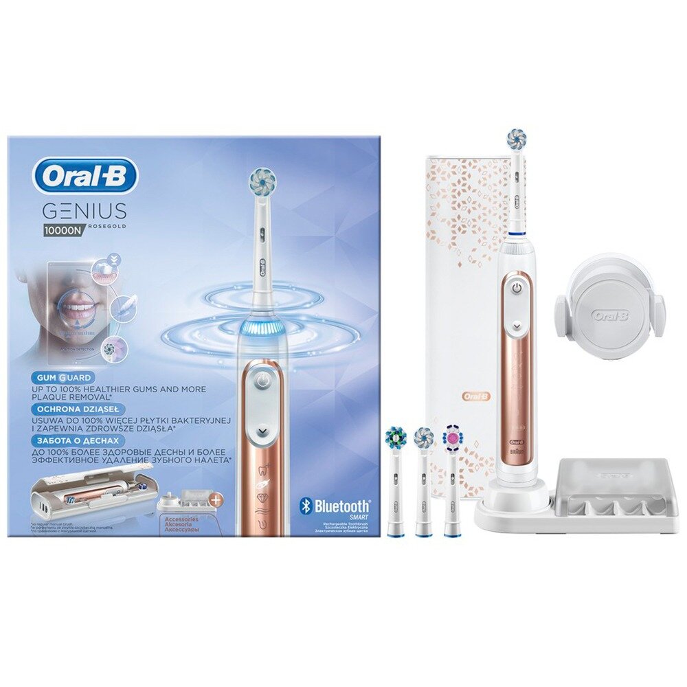 Электрическая зубная щетка Oral-B Genius 10000N с функцией защиты десен Gum Guard Assistant и дорожным футляром Premium Charge, цвет розовое золото