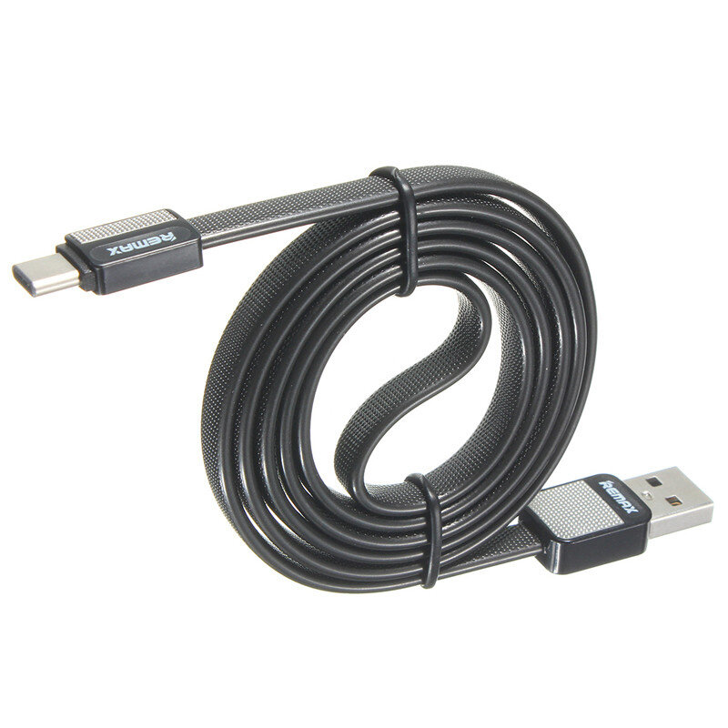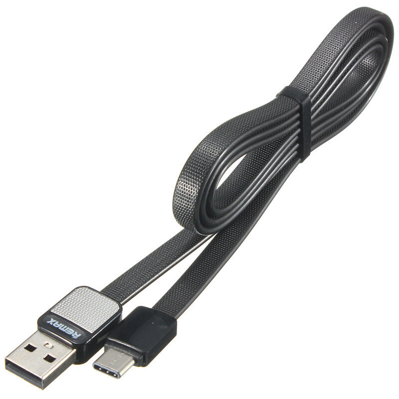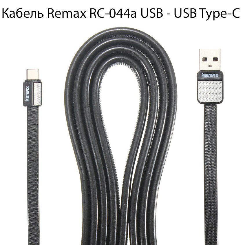 Кабель USB - Type-C Remax RC-044a Platinum, 1.0м, плоский, 2.1A, силикон, цвет: чёрный