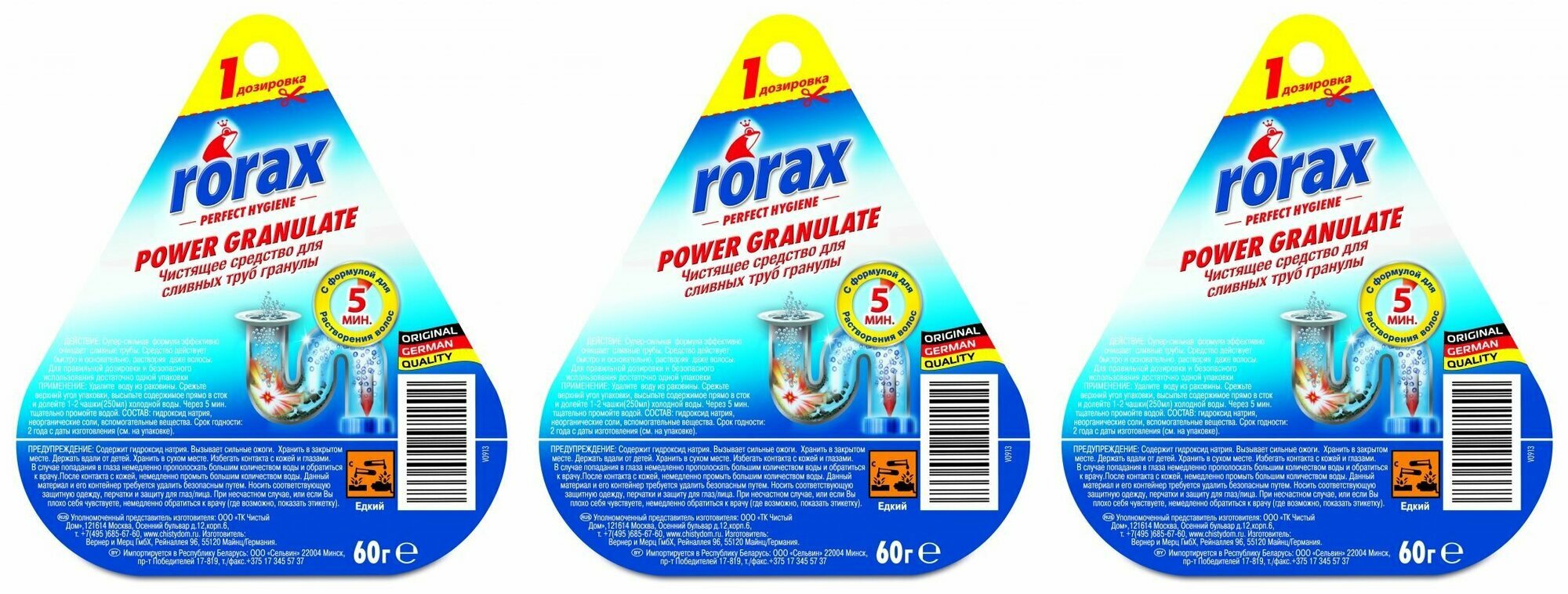 Rorax Чистящее средство для сливных труб, гранулы, 60 г, 3 шт интересное: