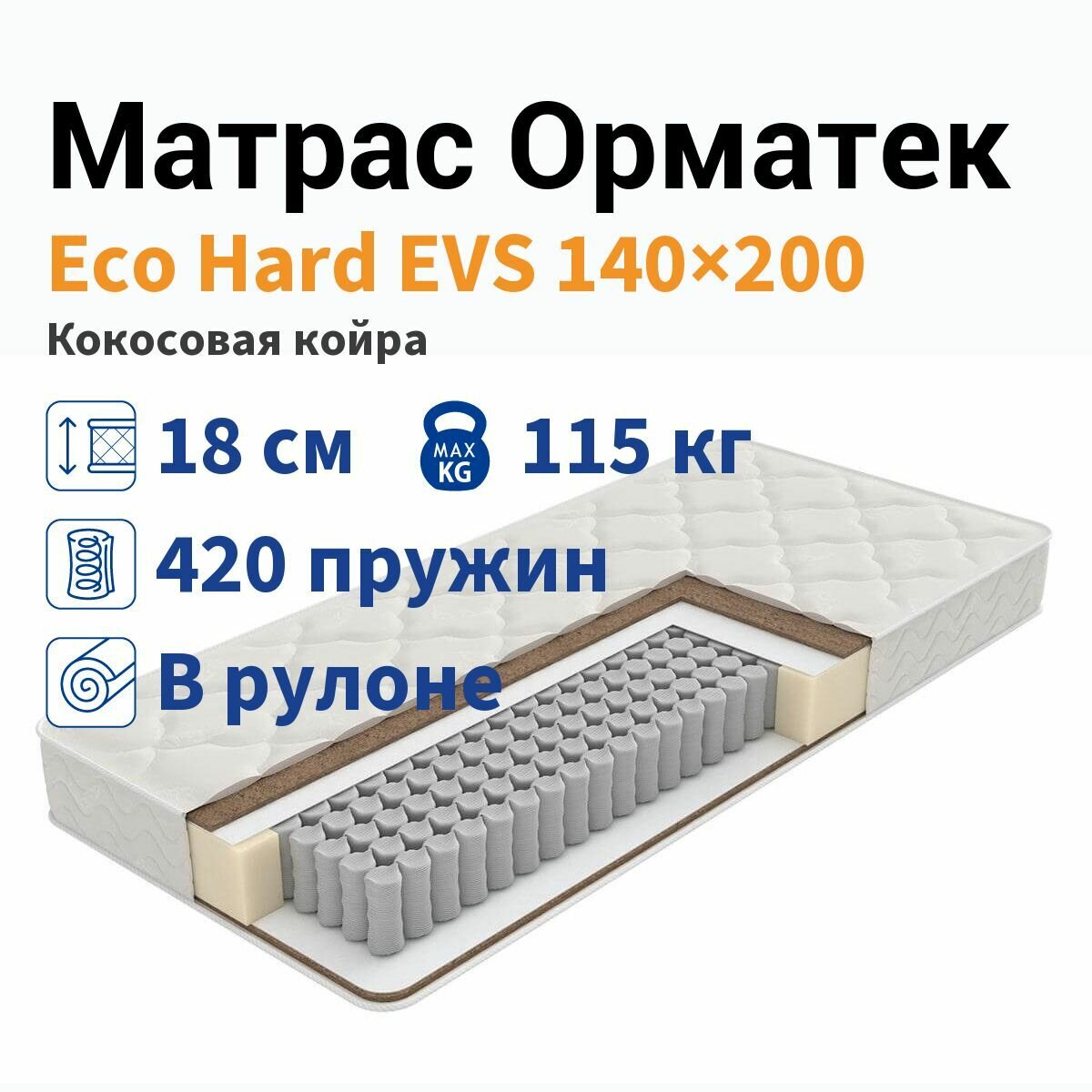 Матрас Орматек Eco Hard EVS, Размер 140 x 200 см