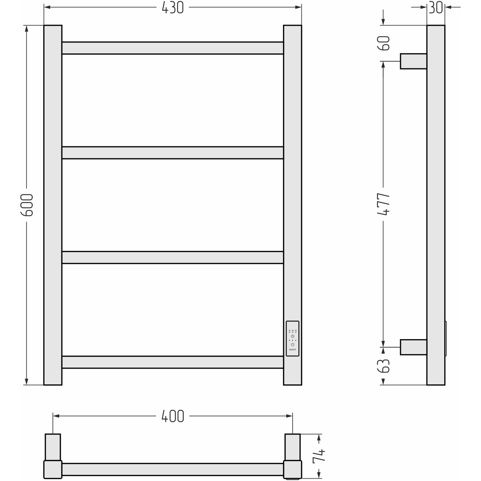 Полотенцесушитель электрический Стилье Формат 26 600х400 правый Матовый белый