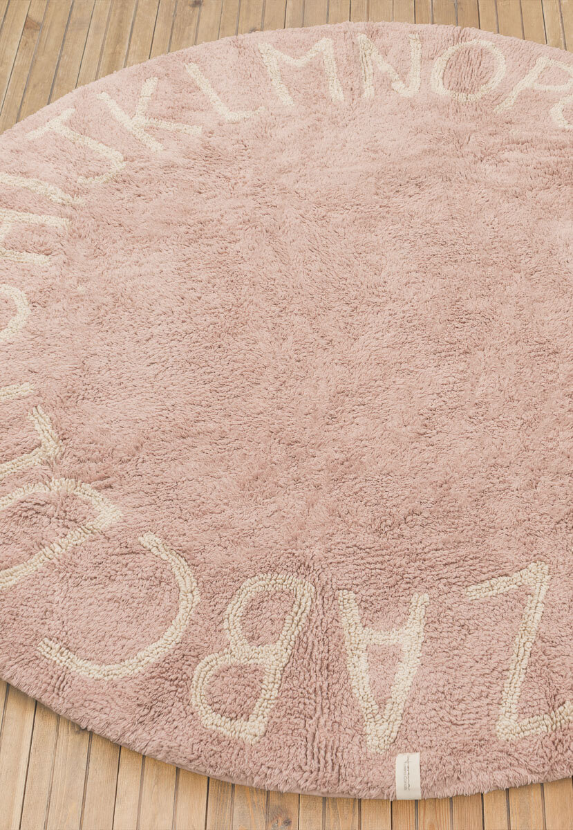 Ковер на пол 1,5 на 1,5 м в детскую, спальню, гостиную, розовый Lorena Canals Cotton Alphabet C-ABC-VNN круглый