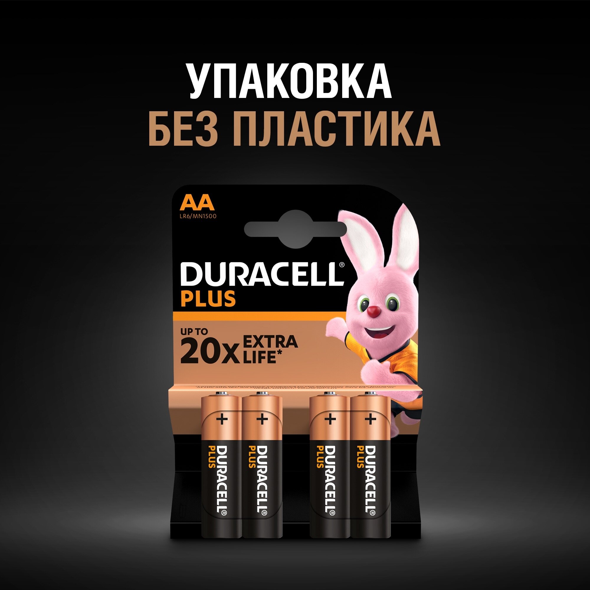Батарейки DURACELL PLUS AA, 4 шт, щелочные, блистер, пальчиковые.