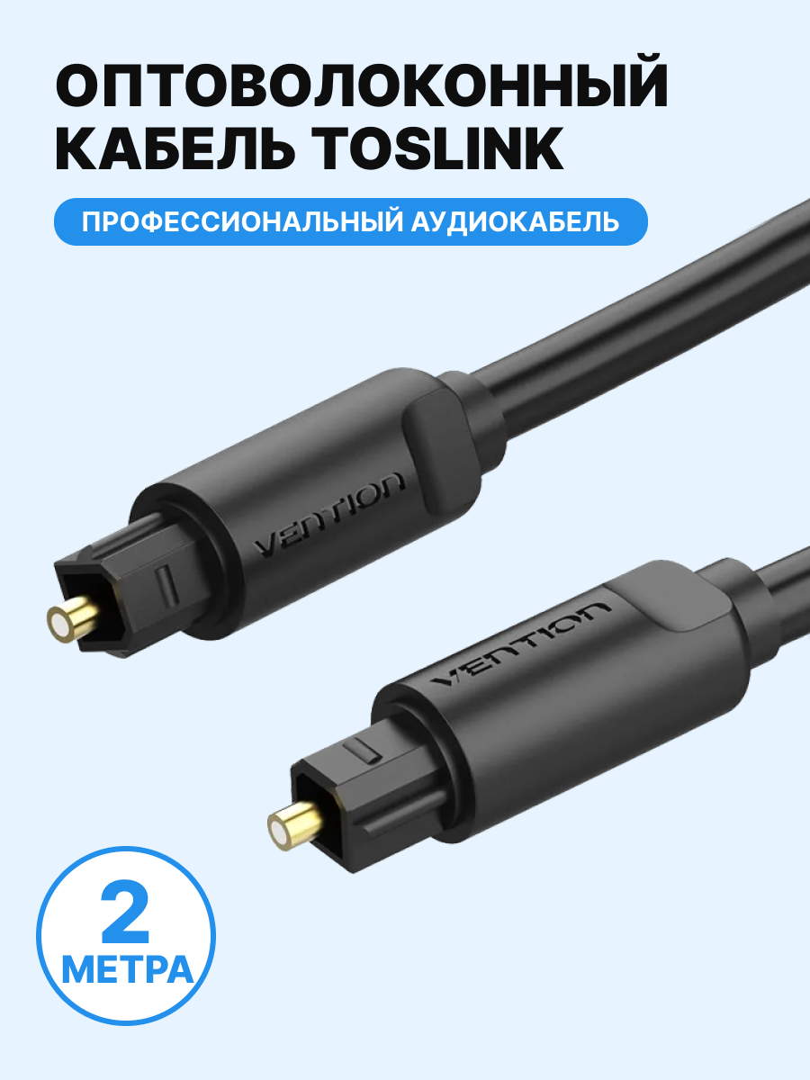 Оптический кабель аудио 2 метра. Vention цифровой для профессиональной гарнитуры Toslink M(штекер) /Toslink M(штекер) арт. BAEBH