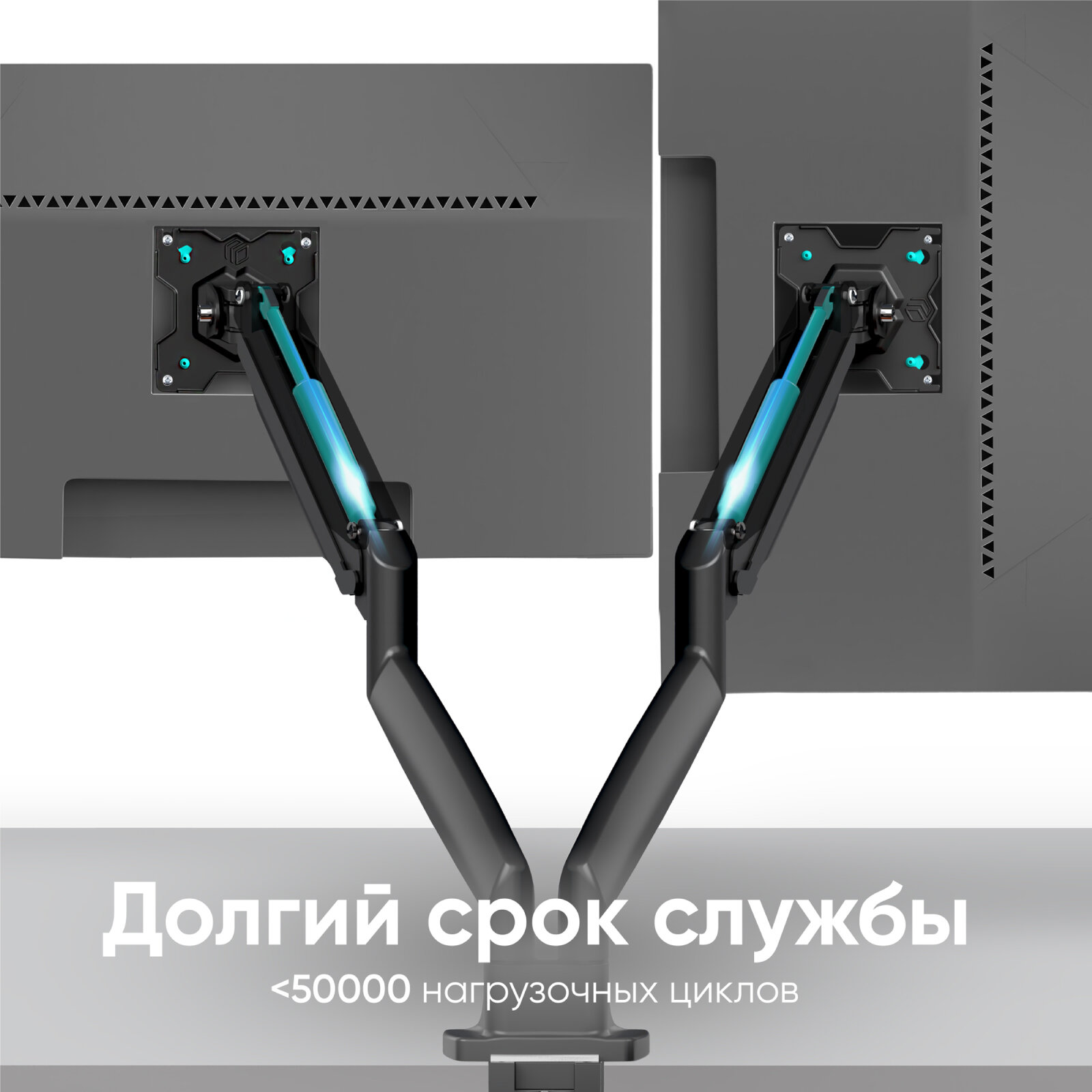 Кронштейн для 2 мониторов ONKRON/ 13-32 газлифт макс 100*100 наклон -90?/+90?, поворот +-90°, 2 колена, вылет от стены до 525мм, крепление к столу 10-