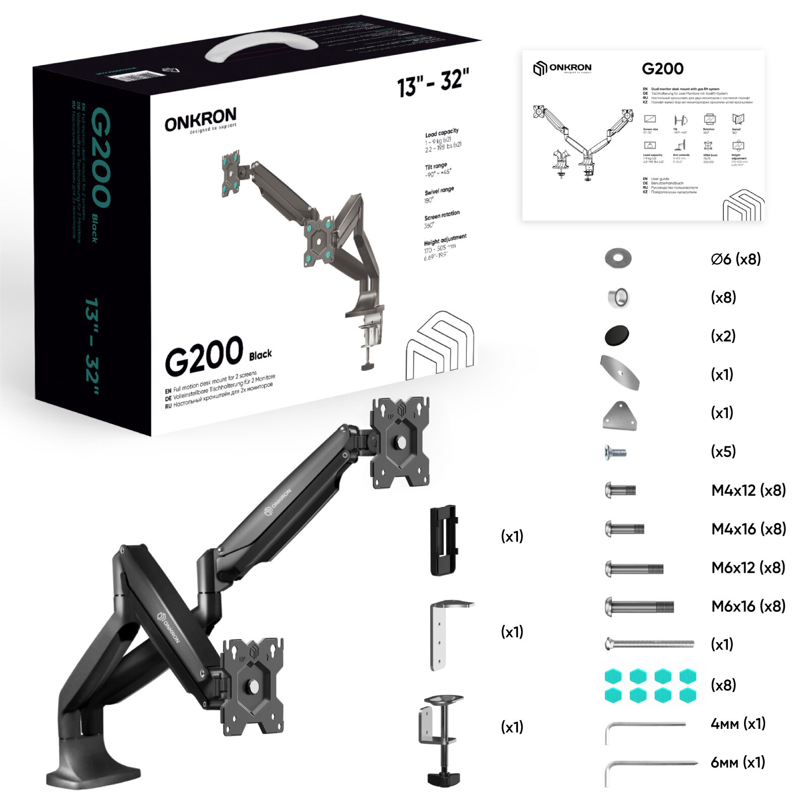 Кронштейн для 2-х мониторов ONKRON G200 BLACK