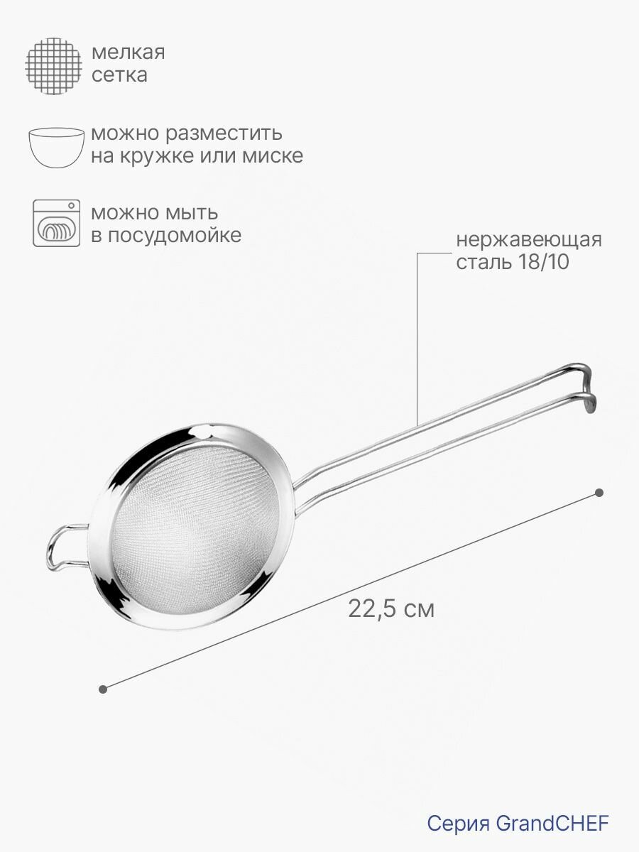 Сито кухонное для муки мелкое Tescoma GrandCHEF, диаметр 8 cм интересное: