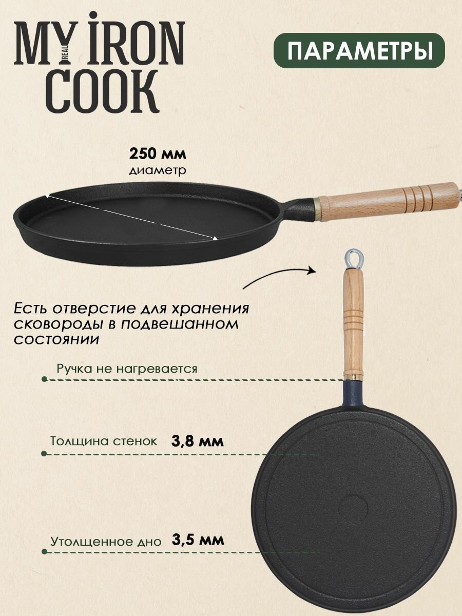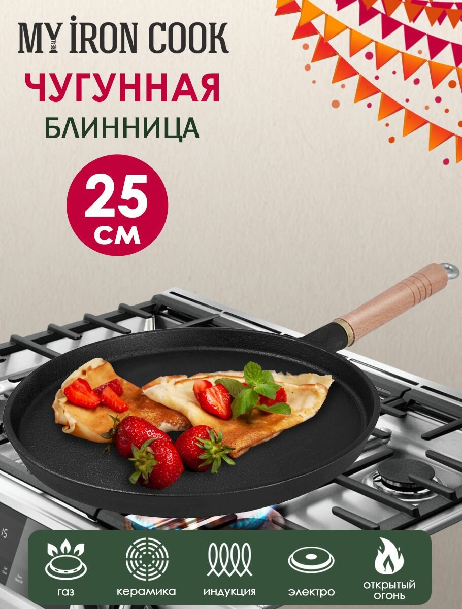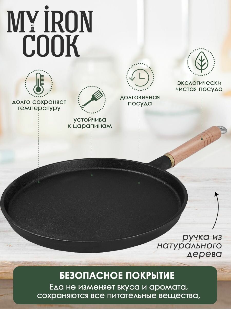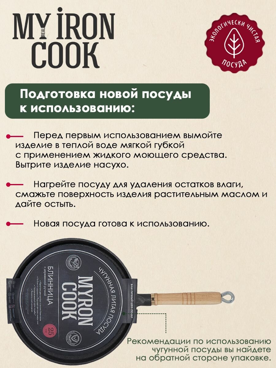 Сковорода чугунная блинная 25см TM MY REAL IRON COOK интересное: