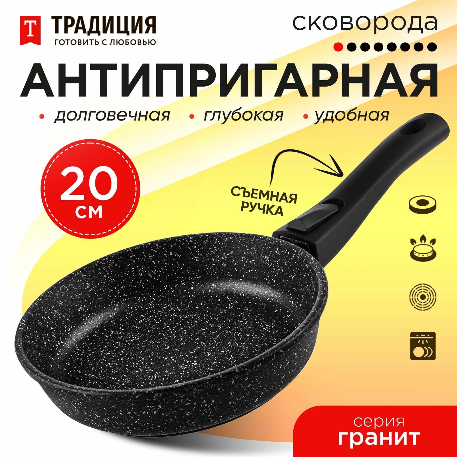 Сковорода ТГ2205 литая 20 см съемная ручка гранит Традиция