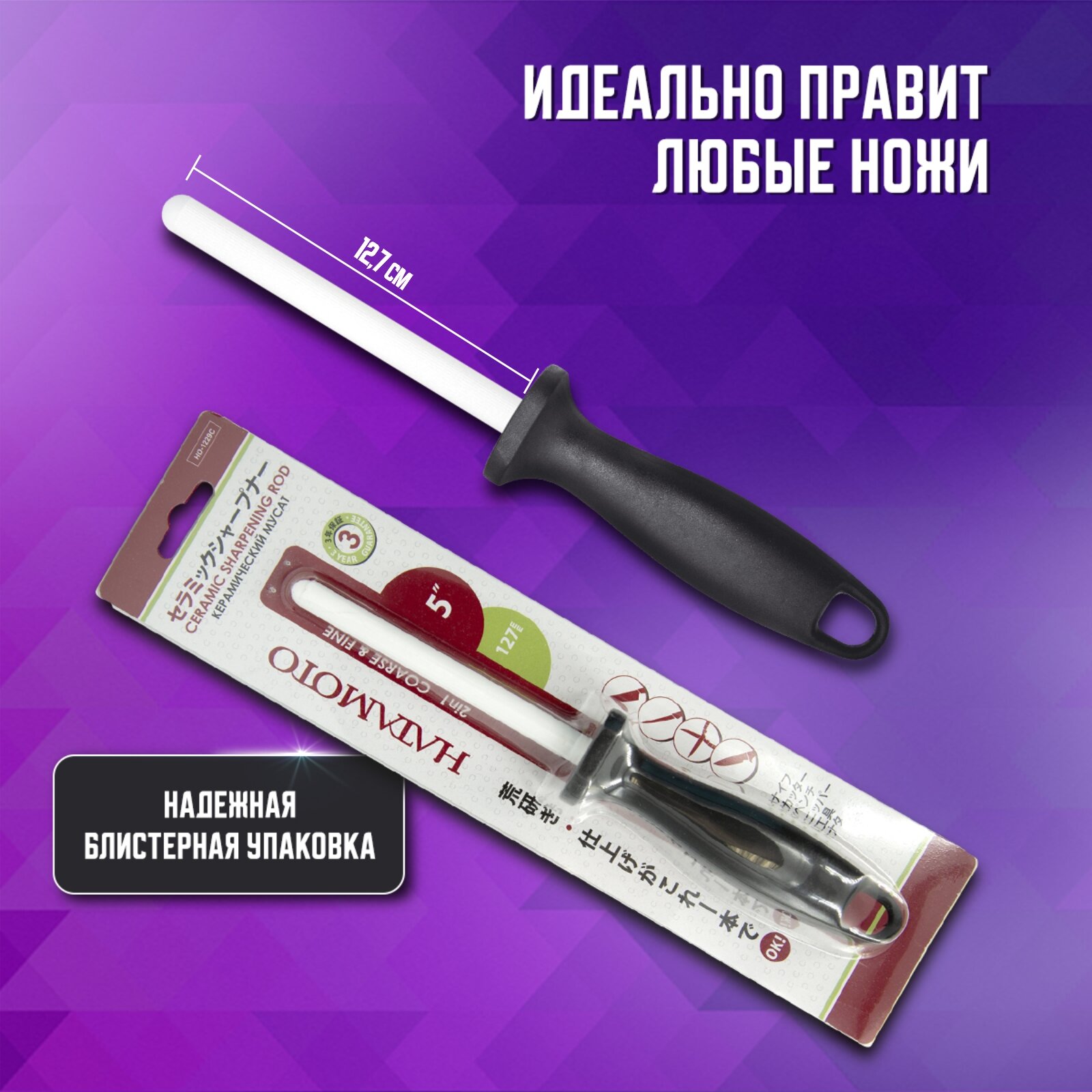Мусат для ножей Hatamoto (HD-1229C), длина 12,7 см, керамический для правки и поддержания остроты лезвия интересное: