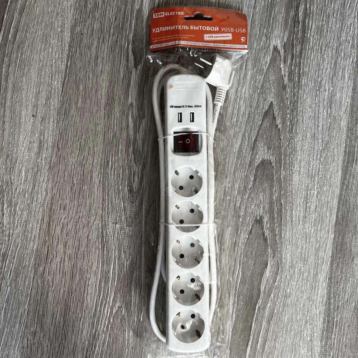 Купить Удлинитель бытовой TDM Electric У05В-USB на 5 розеток с 2 USB-входами, длина 1,5 м
