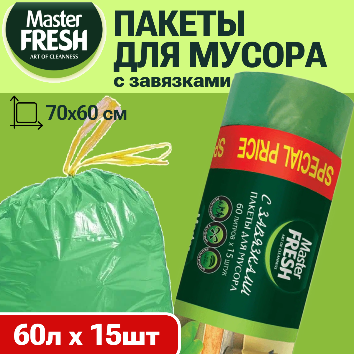 Пакеты для мусора 60л/15шт (с завязк.) Master FRESH MFGB60-15R