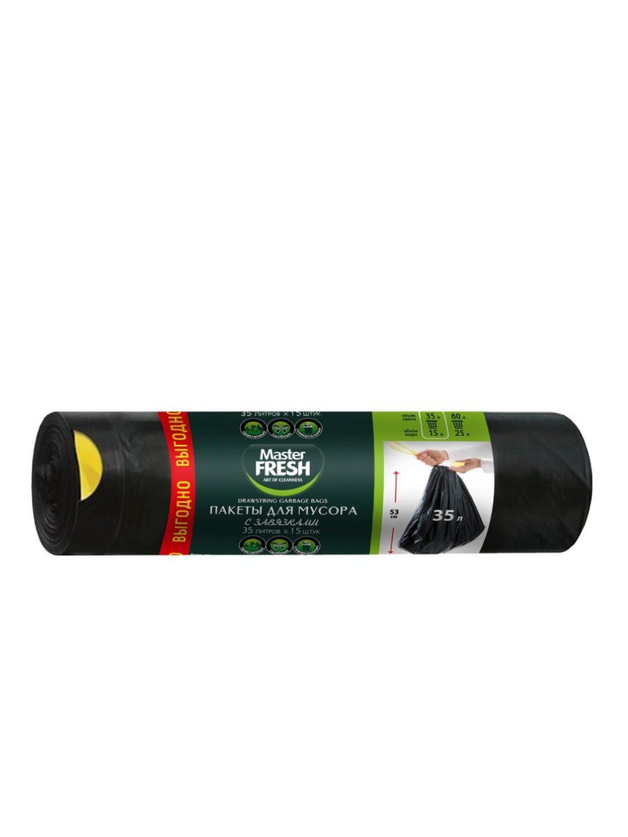 Ниже Вы можете прочитать отзывы на Пакеты для мусора 35 л, 15 шт, 12 мкм, с завязками, Master Fresh, черные, ознакомится с подробными характеристиками, посмотреть интересные обзоры и фотографии на Пакеты для мусора 35 л, 15 шт, 12 мкм, с завязками, Master Fresh, черные.