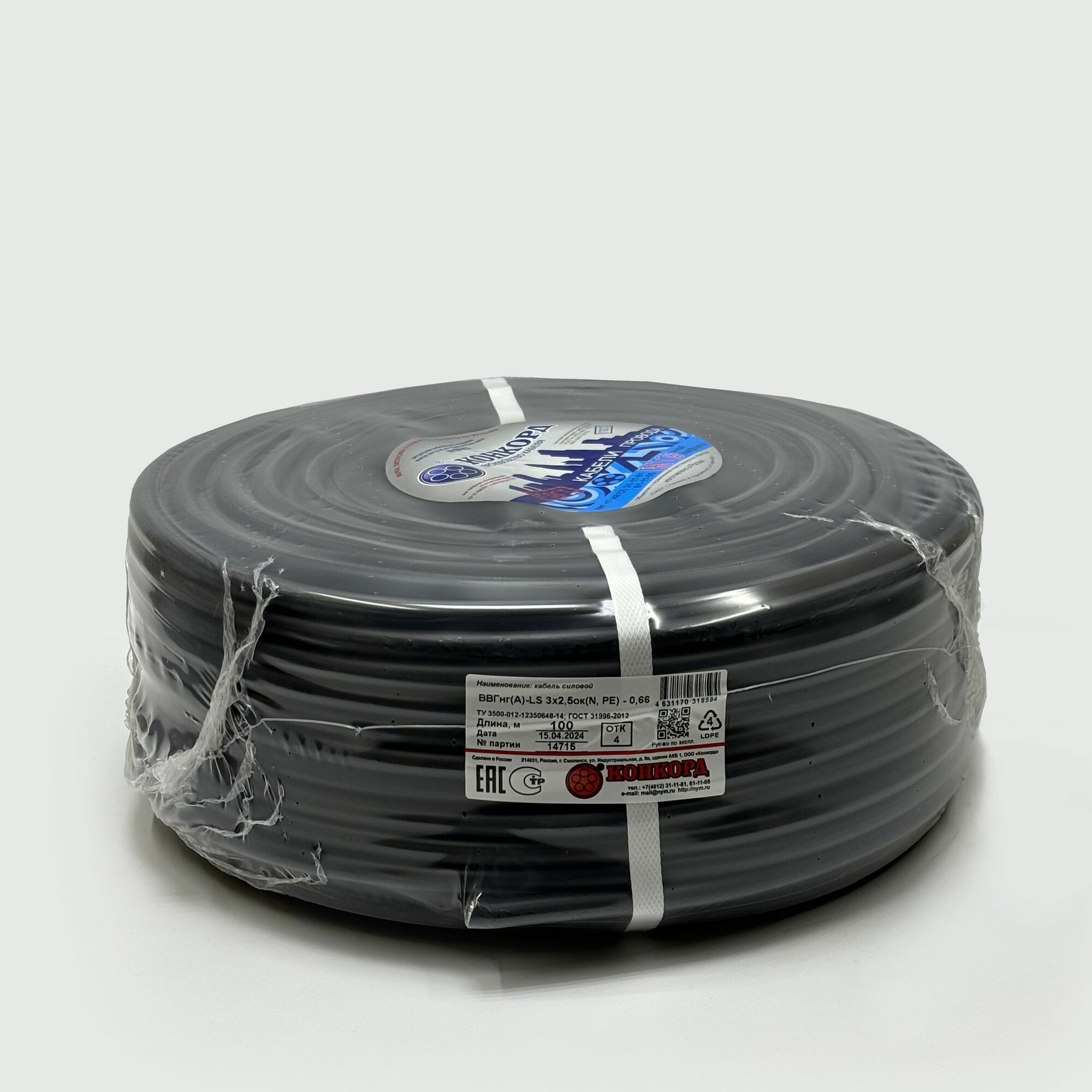 ВВГ НГ LS конкорд 3Х2,5 с зап 100м