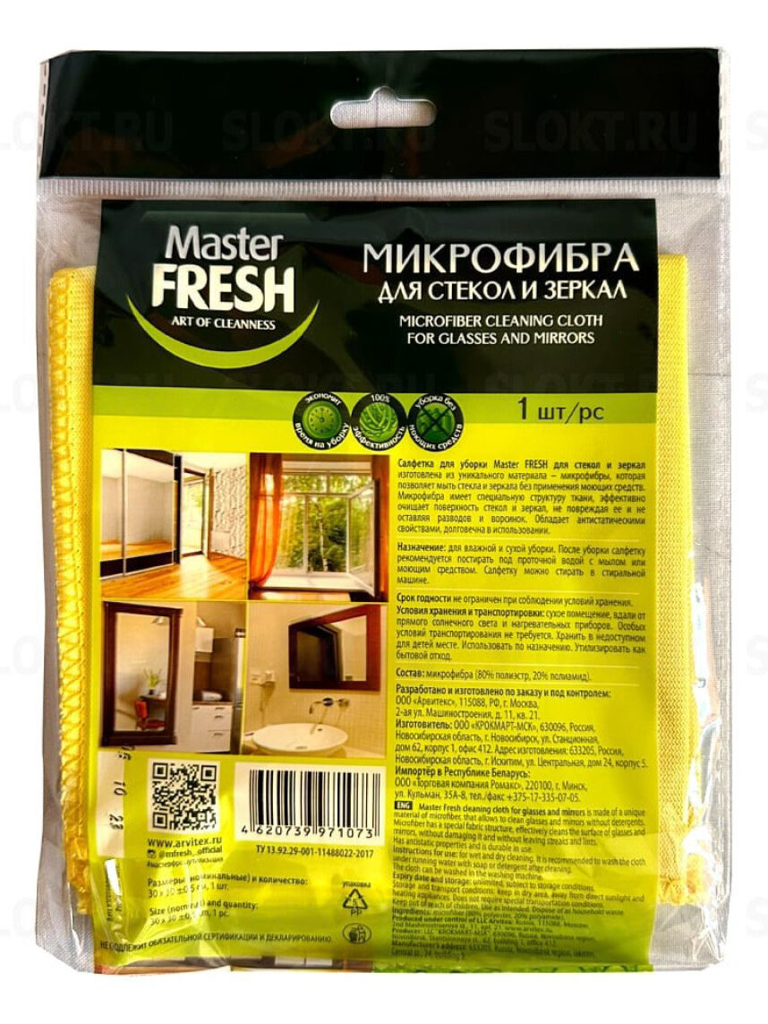 СохранитьСалфетка для стекол и зеркал Master FRESH микрофибра, желтый/зеленый, 1 лист., 1 уп. интересное: