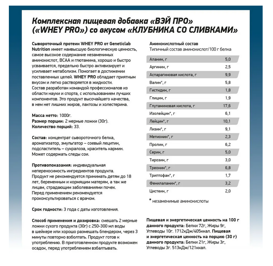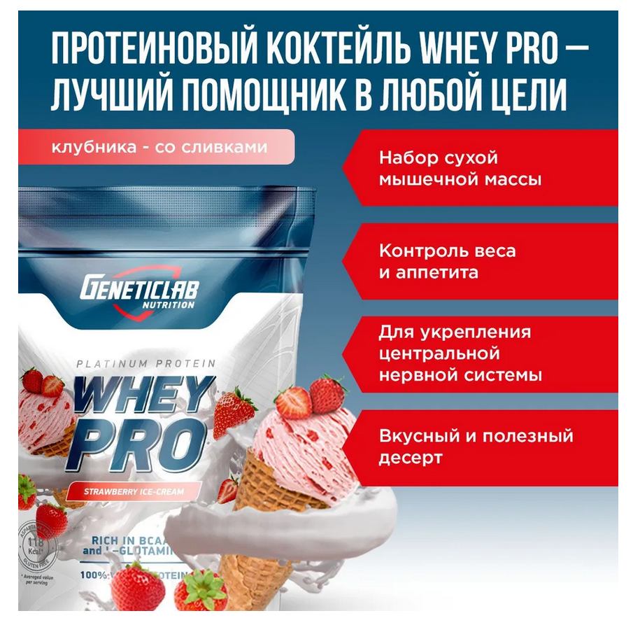 СохранитьСывороточный протеин "Geneticlab Nutrition Whey Pro", клубника со сливками, 1кг интересное:
