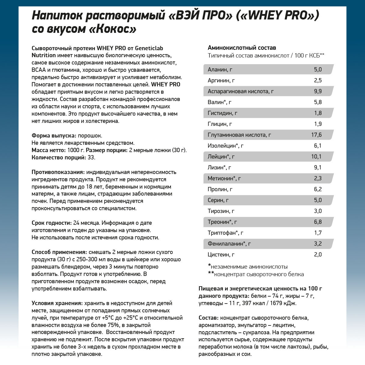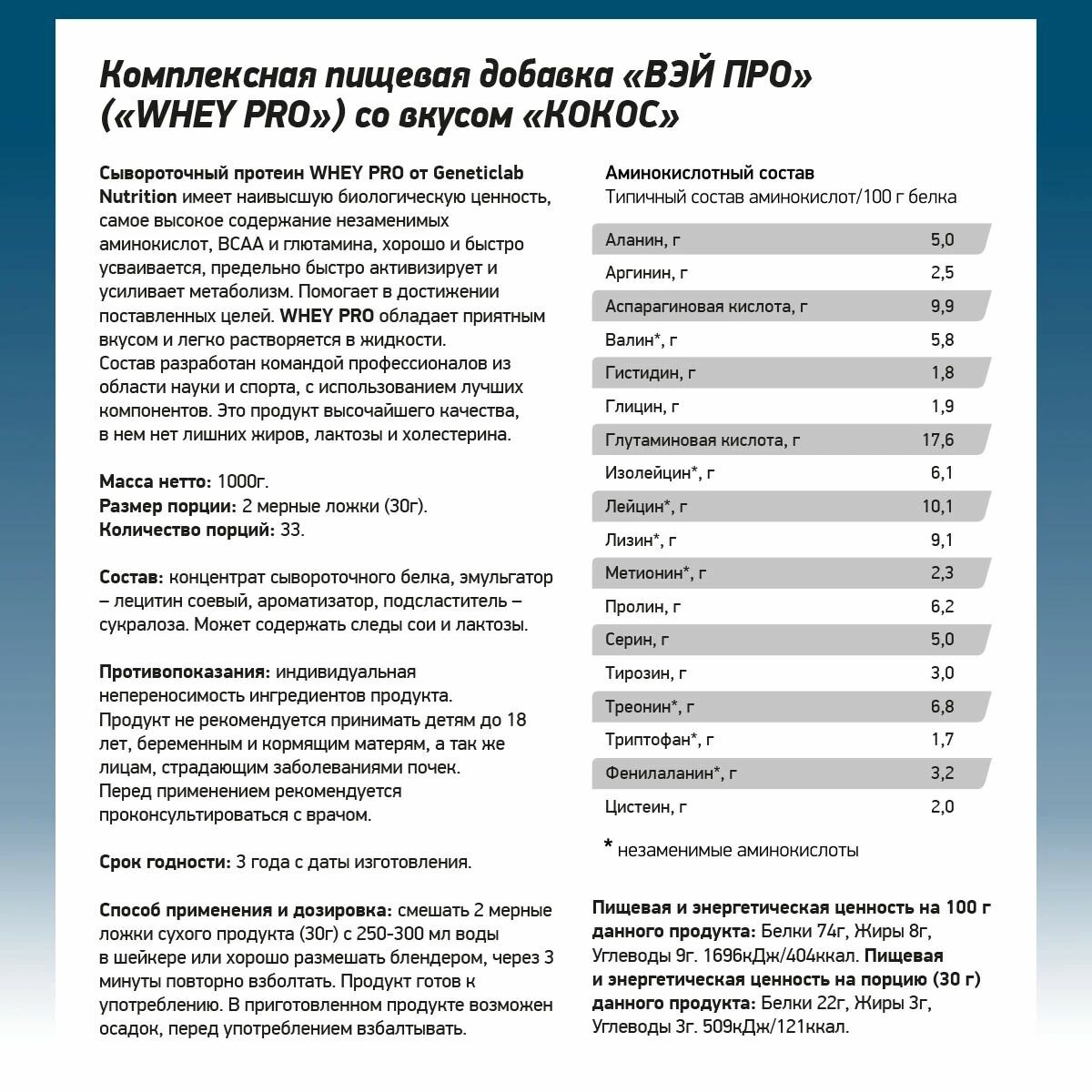Geneticlab Whey Pro 1кг Кокос