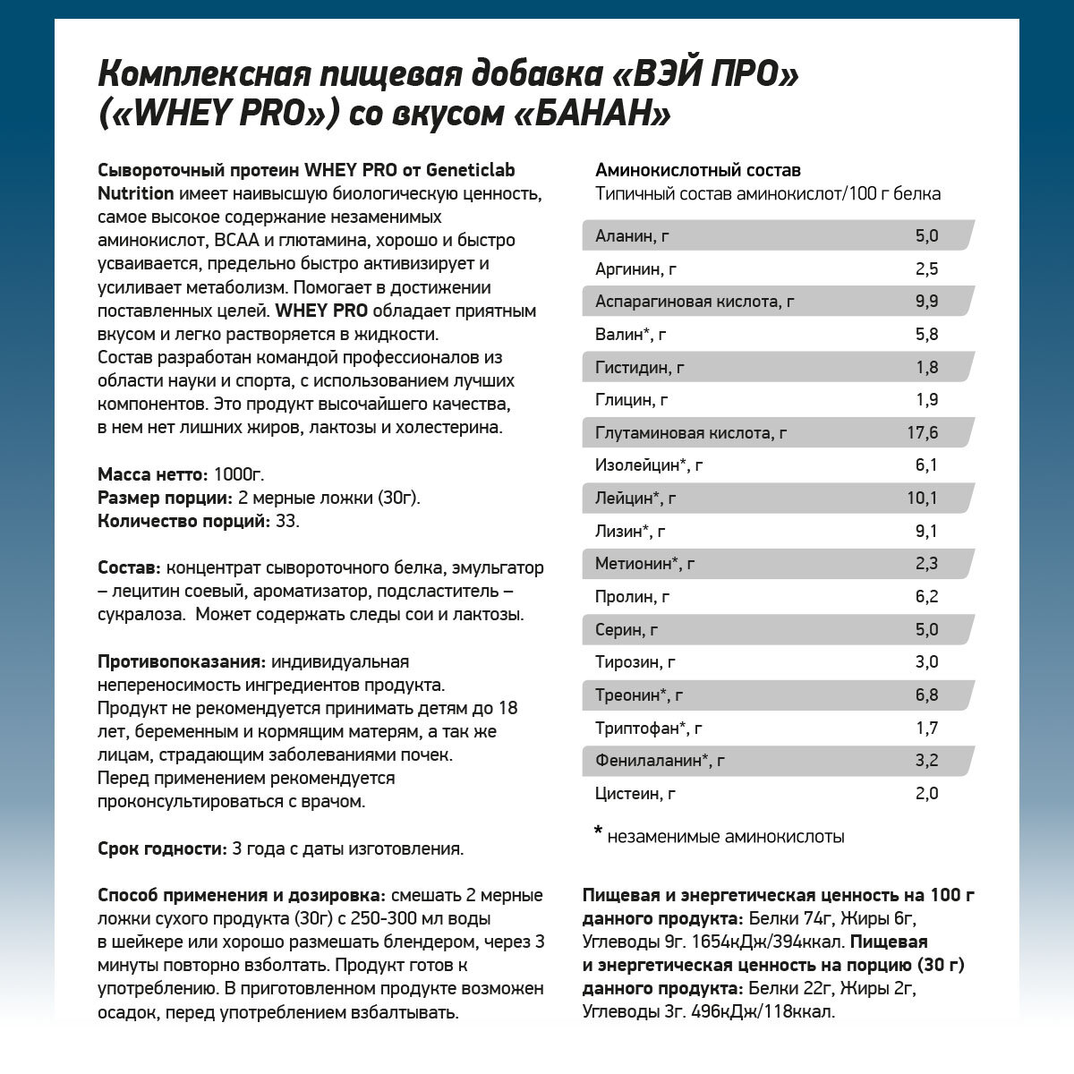 Сывороточный протеин "Geneticlab Nutrition WHEY PRO", банан, 1000г