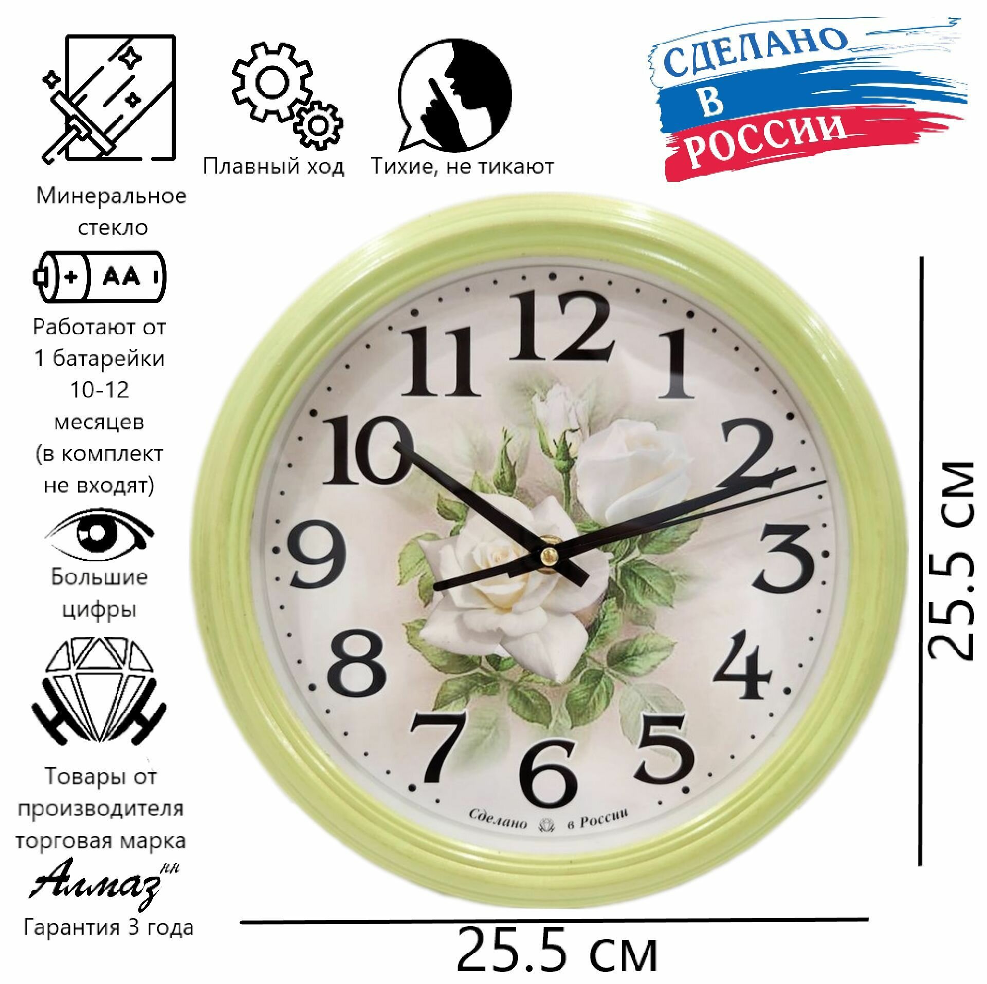 Часы настенные АлмазНН диаметр 25.5 см бесшумные с крупными цифрами C26 интересное: