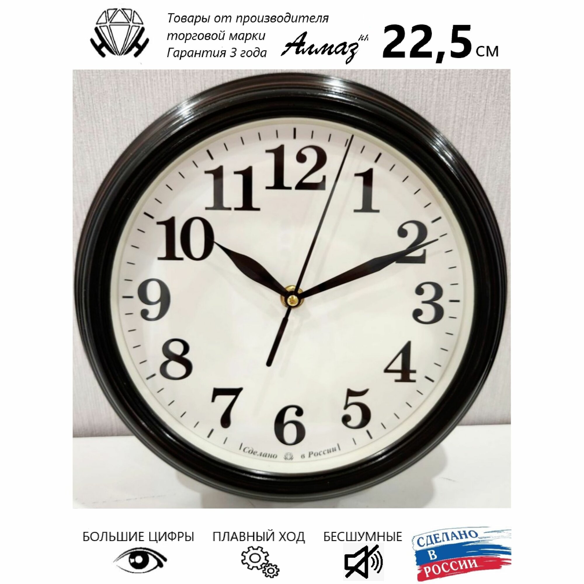 Часы настенные АлмазНН диаметр 25.5 см бесшумные с крупными цифрами C03 интересное: