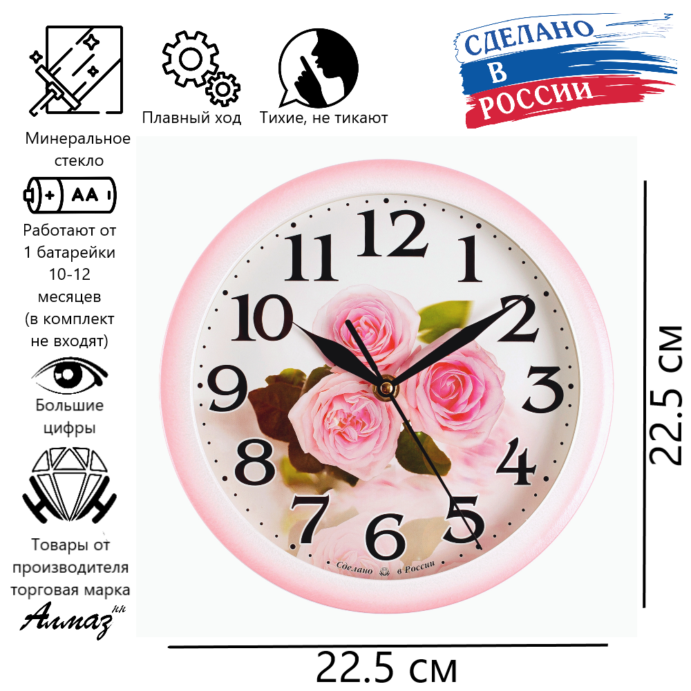 Часы Настенные Алмаз 22,5 см, бесшумные на кухню спальню дачу цветы розы Е30 интересное: